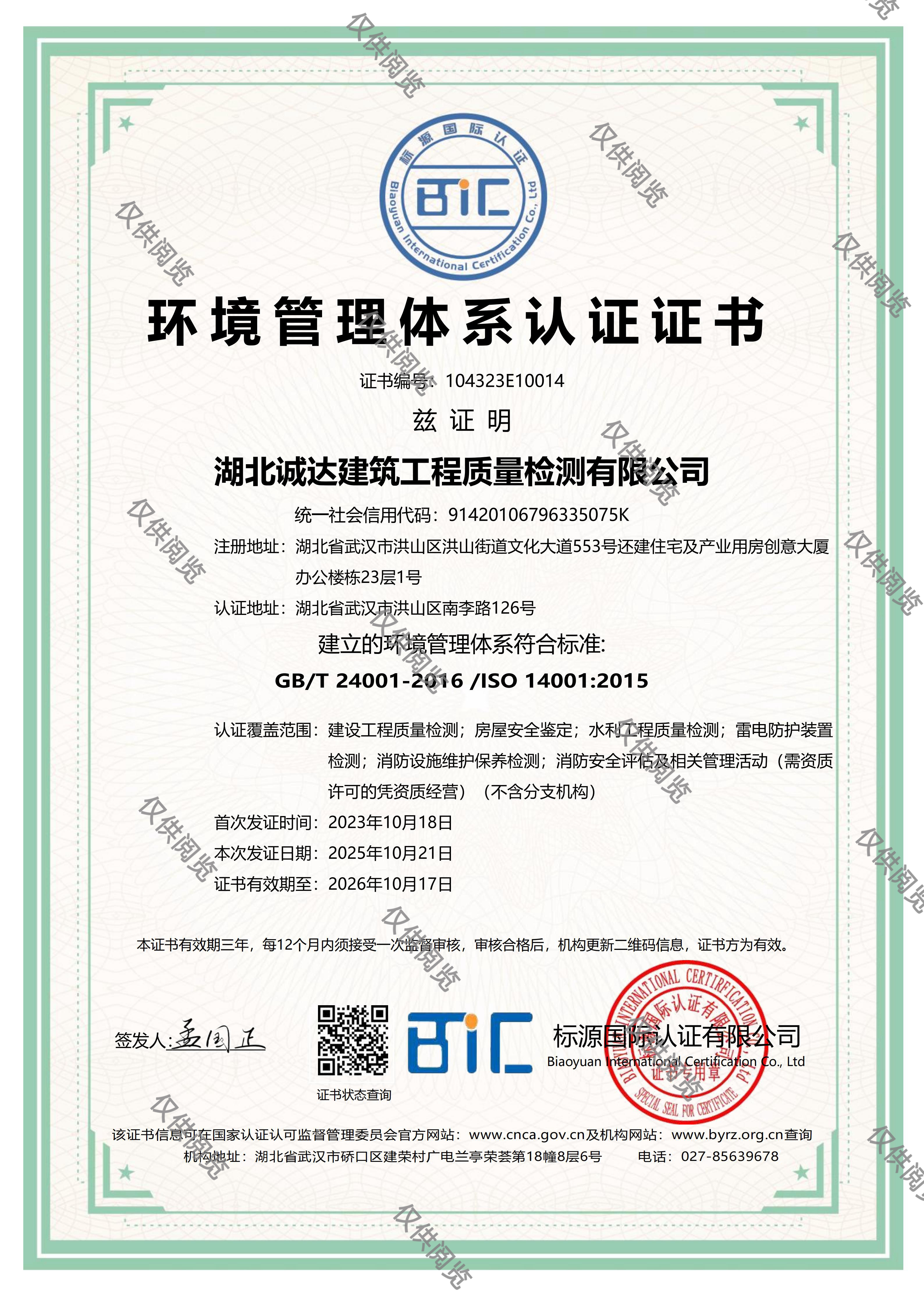 公司名稱:湖北誠達建筑工程質量檢測有限公司